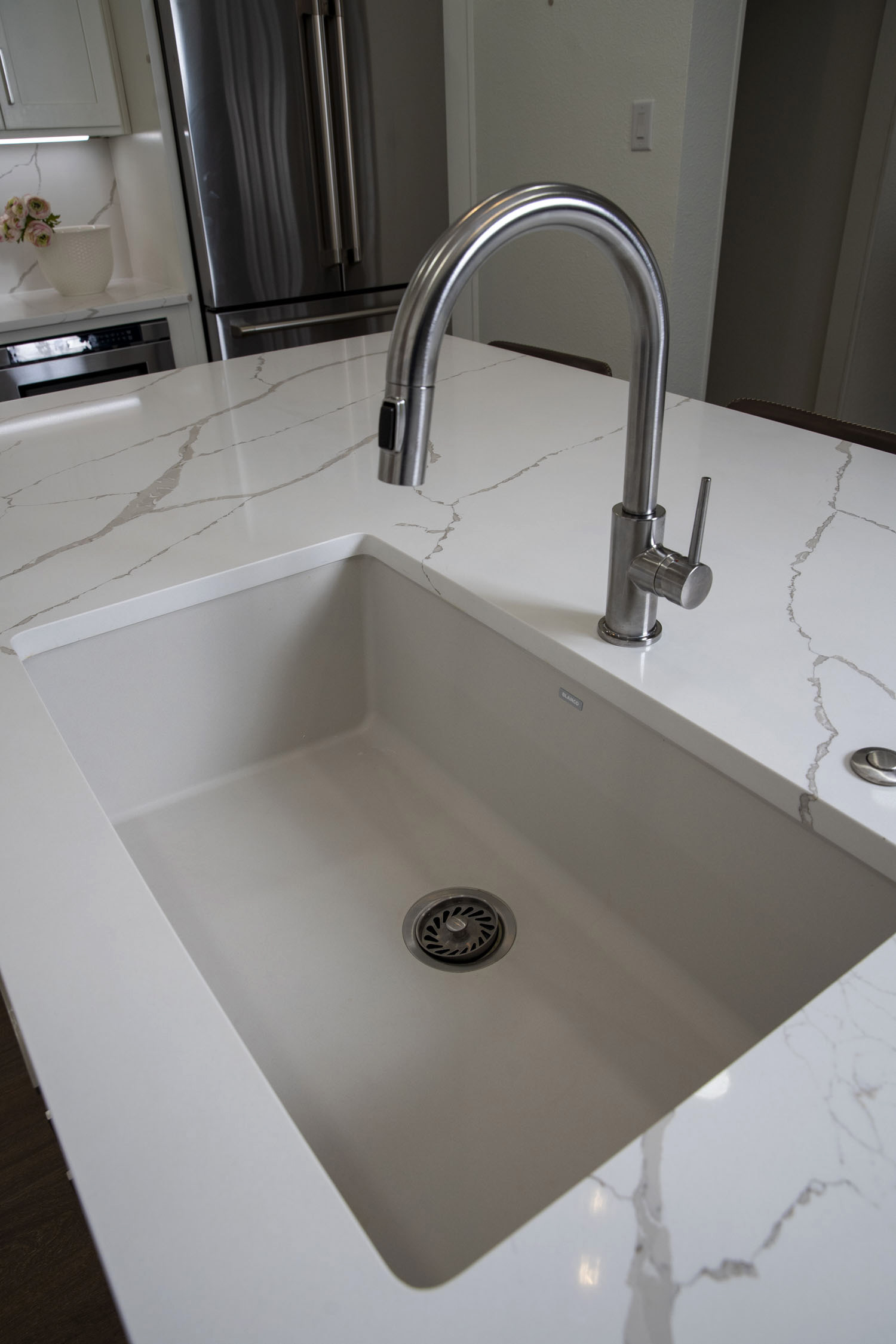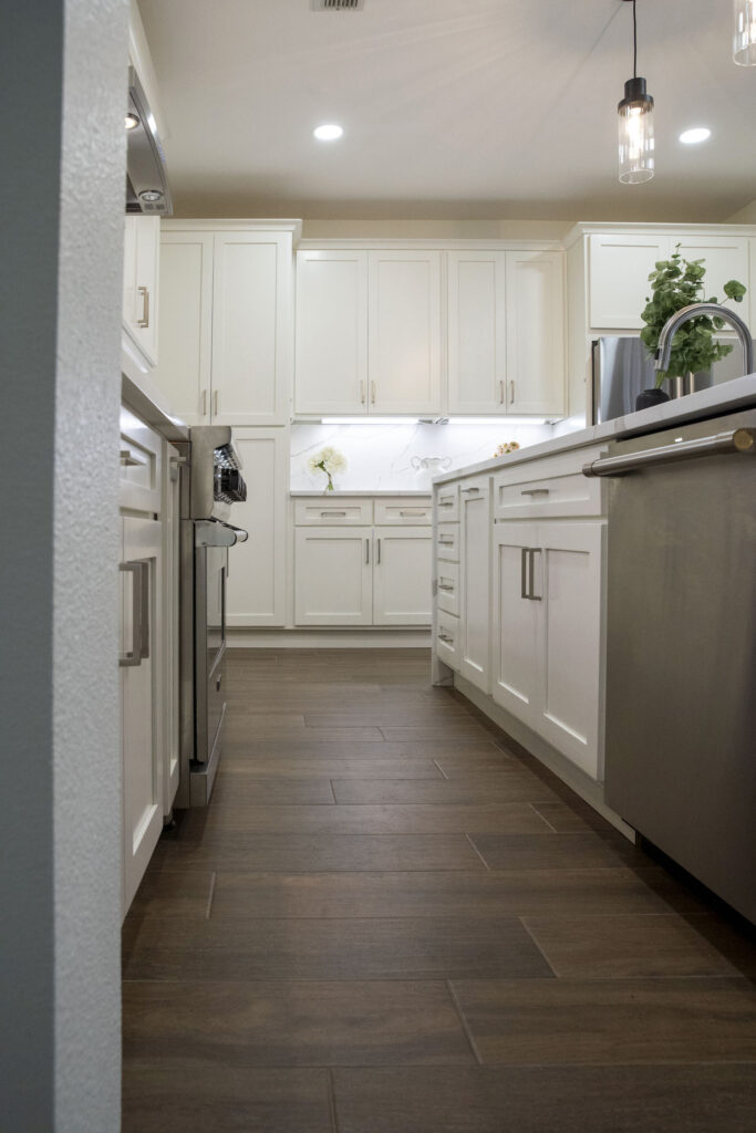 This kitchen hadn’t been updated since the house was built, we knocked down a lot of walls and created an open space between the kitchen, dining room and living area. The updated flooring throughout the entire first floor brought everything together.
